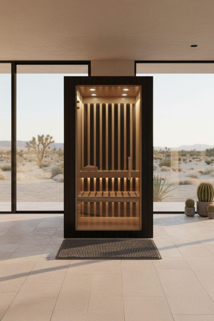 The Sierra Custom Sauna is for those who want the Atlas base with elevated materials and more immersive lighting and design. It’s our most premium indoor sauna build — an indulgent, detail-rich infrared sanctuary.